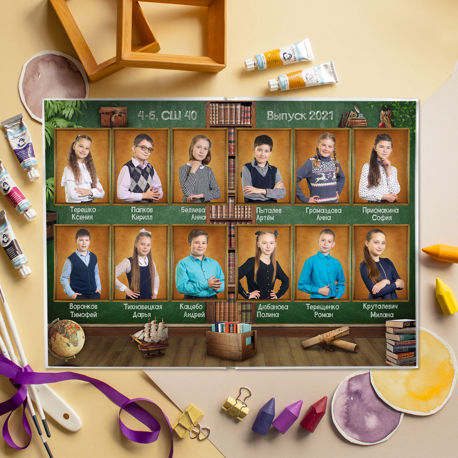 - Выпускные фотоальбомы размером 30*40 сантиметров в открытом состоянии.